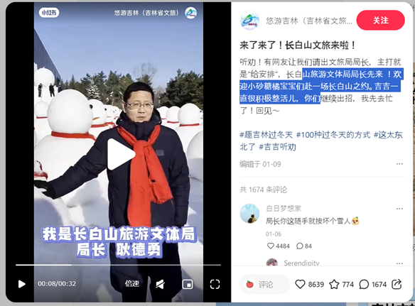 例えば中国の各市観光局はこのトレンドを活用し、SNSで地元の魅力をアピールしています。局長が動画に登場したり、一般の投稿に対して現地の観光スポットをアドバイスとしてコメントをすることで、若者との距離を縮めたプロモーションが行われています。ハルビン市はこの戦略で成功し、2024年の元旦の3日間で304.79万人の観光客を迎え、59.14億元の収入を達成しました。